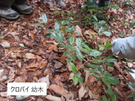 *クロバイの幼木、成木、意外と所どころで見つかったこと。道路予定地に貴重なものがあるね。いつも歩かない所もたまに歩きましょう。(純/スタッフ)