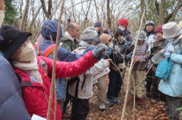 *色々冬芽の観察ができたと思います。説明がていねいで良いですね。名札がたくさんかかっていて、最後の方の人も札に気づいて、見る機会が得られました。(純/事務局)