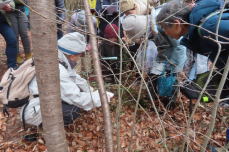 | 時どき雪交りの冷たい日。林縁から谷筋、生産緑地から尾根へ。仰いだり、しゃがんだり、引き寄せたり、のぞき込んだり、うなずいたり、首ひねったり・・・そしていつも笑い声。私たちが春に一番近い。 |